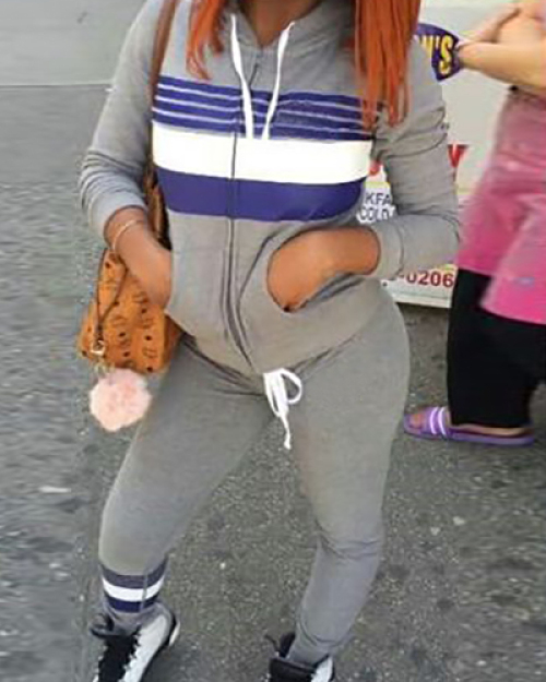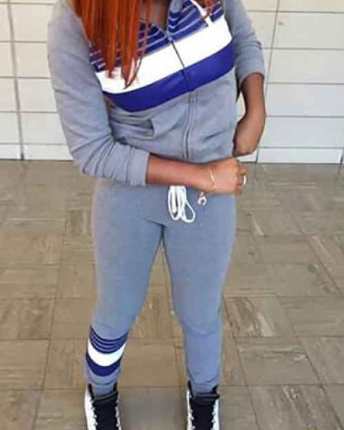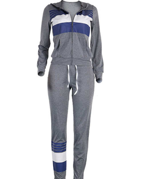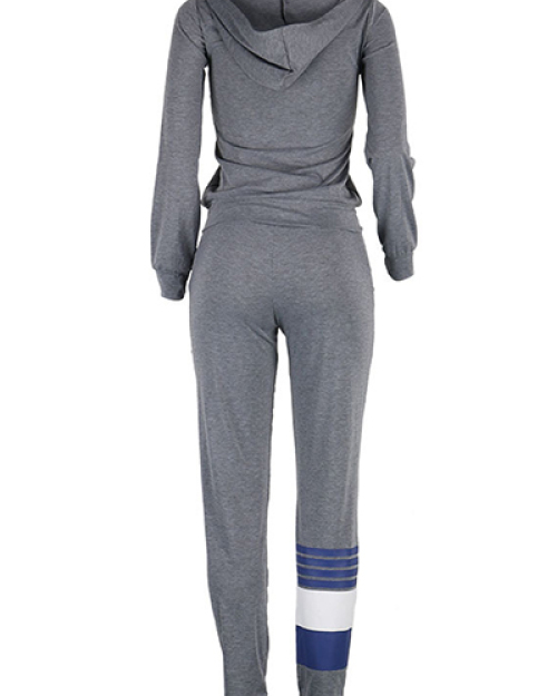 Leisure Long Sleeves Zipper Design Gray Cotton Blend Two-piece Pants Set