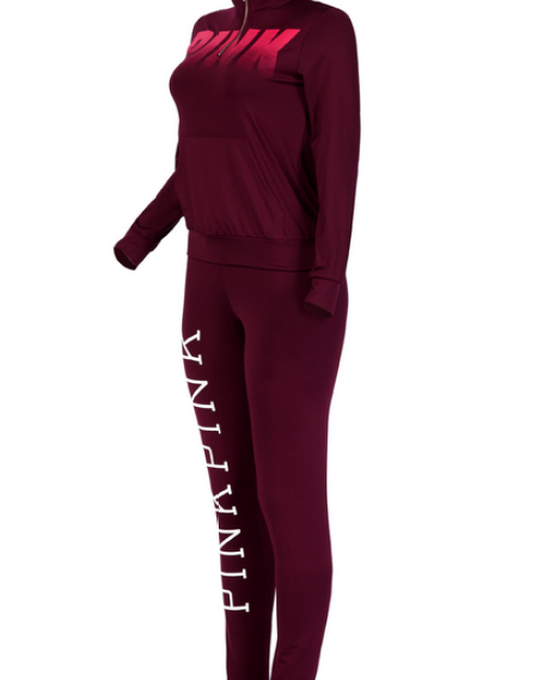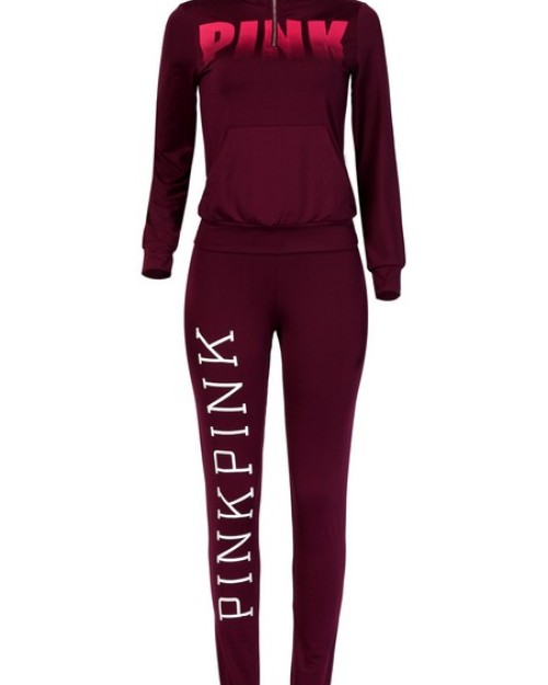 Leisure Turtleneck Long Sleeves Letters Printed Red Qmilch Two-piece Pants Set