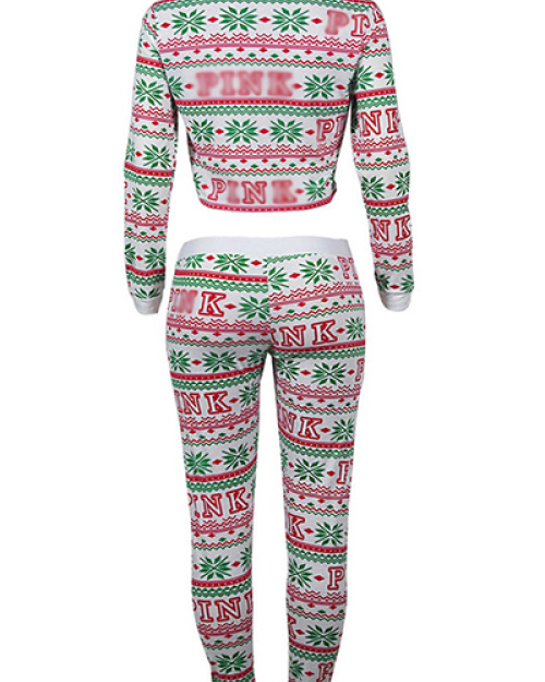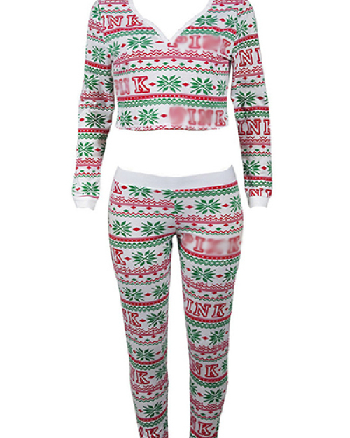 Leisure V Neck Long Sleeves Printed Red Polyester Two-piece Pants Set