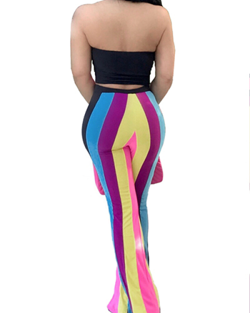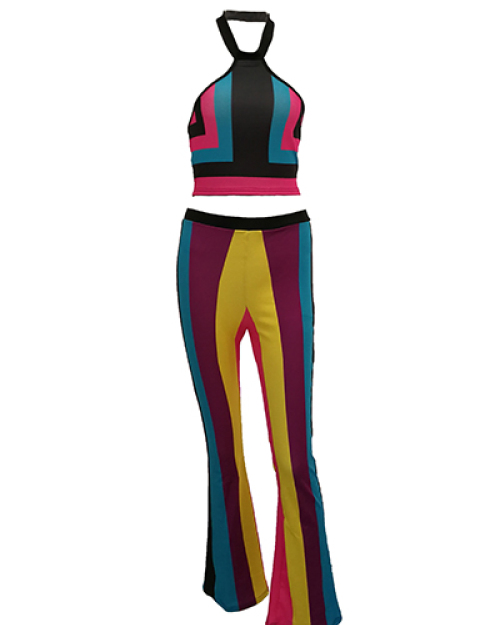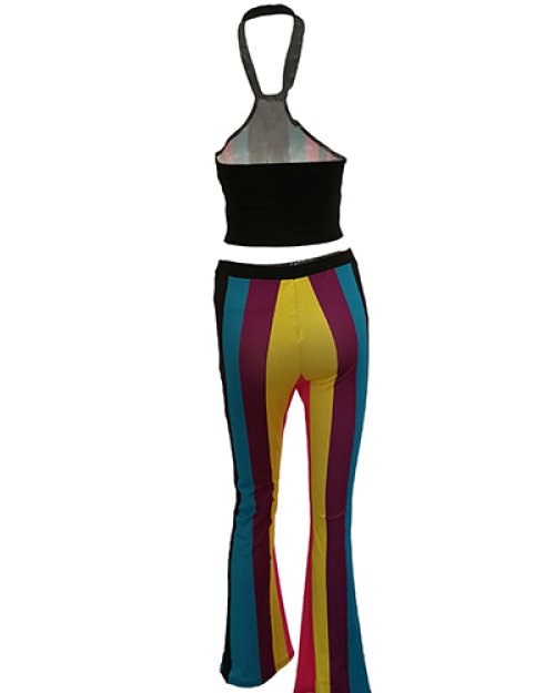 Multi Polyester Pants Color Block V Neck Sleeveless Sexy Two Pieces