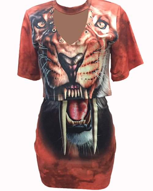 Multi Polyester Skirt Print O neck Short Sleeve Casual Two Pieces