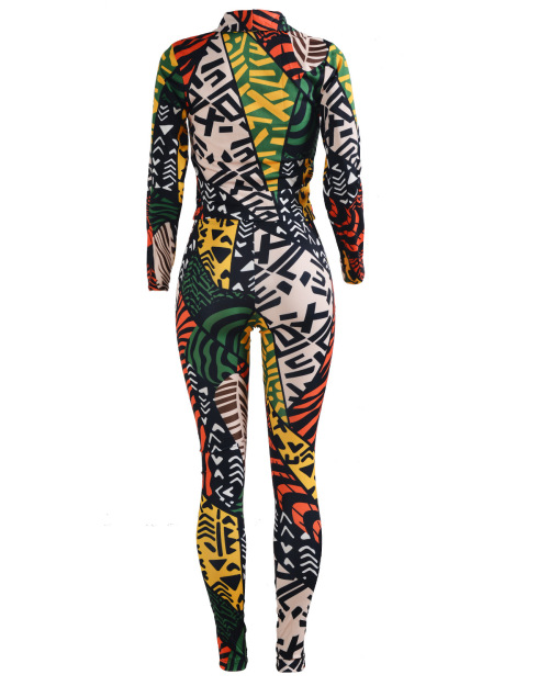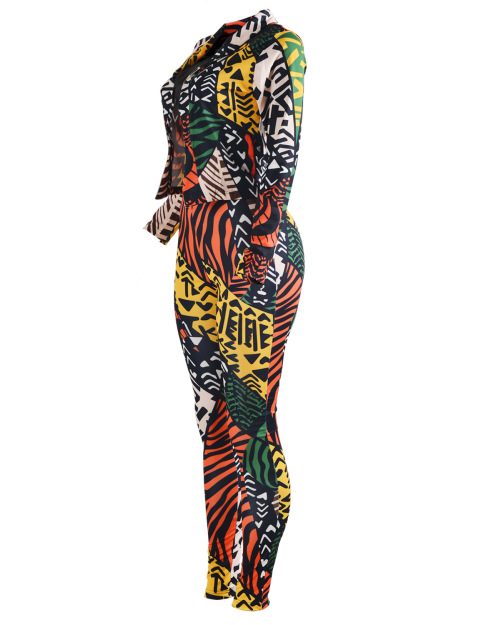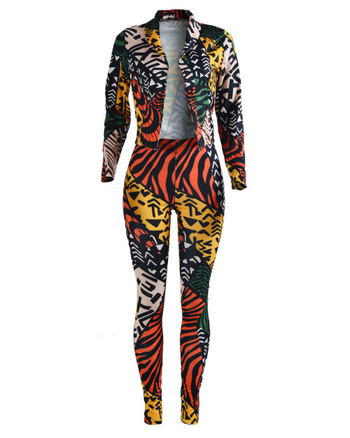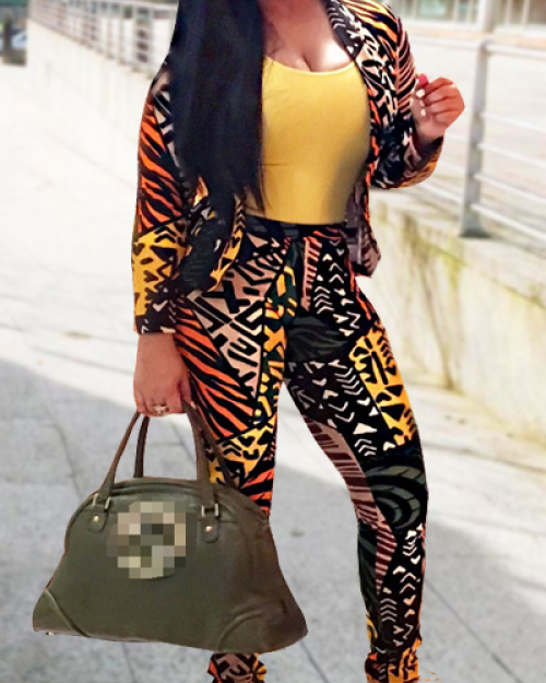 Multi Venetian Pants Print Turndown Collar Long Sleeve Casual Two Pieces