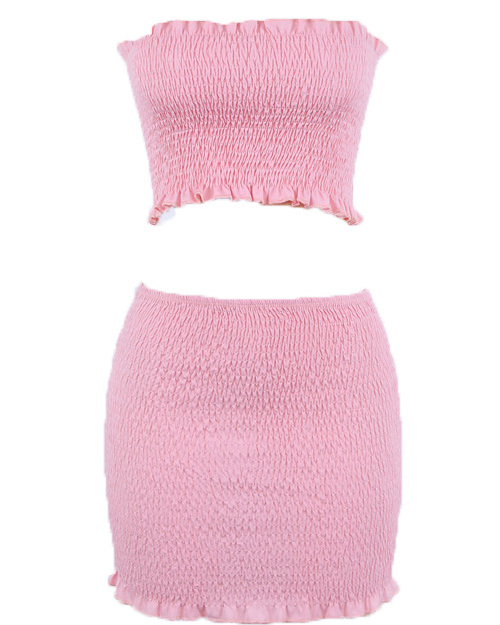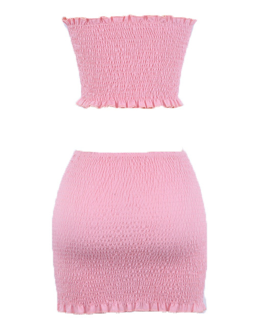 Pink Polyester Skirt Plain Bateau Neck Sleeveless Sexy Two Pieces