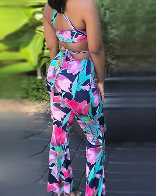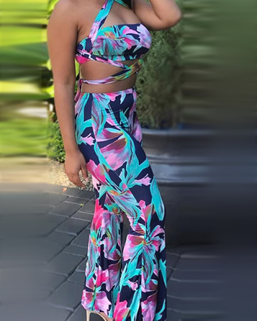 Sexy Bandage Printed Backless Qmilch Two-piece Pants Set