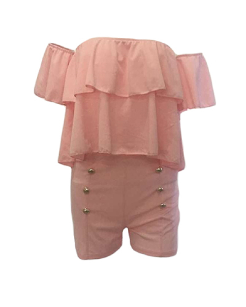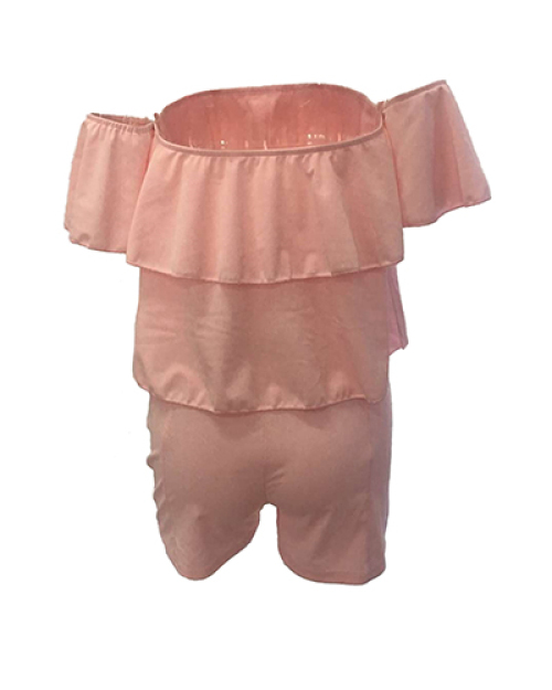 Sexy Bateau Neck Short Sleeves Falbala Design Pink Polyester Two-piece Pants Set