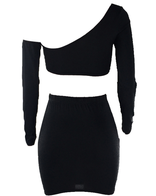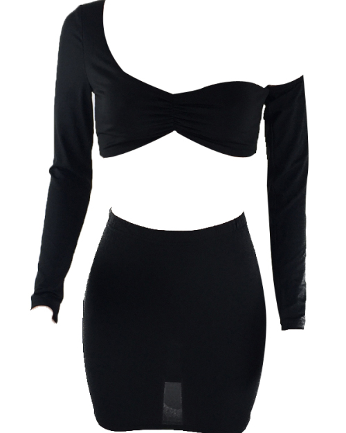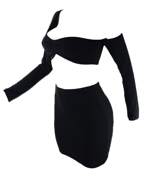 Sexy Dew Shoulder Black Cotton Two-piece Skirt Set