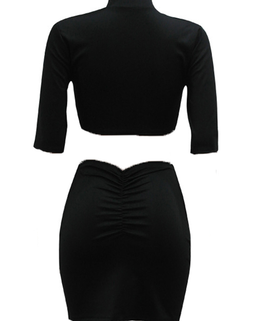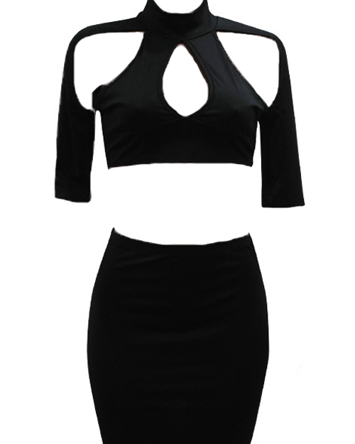 Sexy Hollow-out Black Cotton Two-piece Skirt Set
