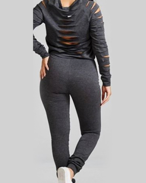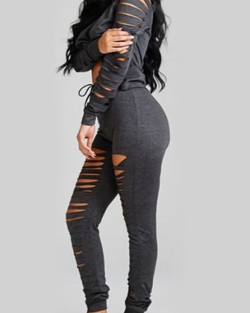 Sexy Hollow-out Grey Polyester Two-piece Pants Set