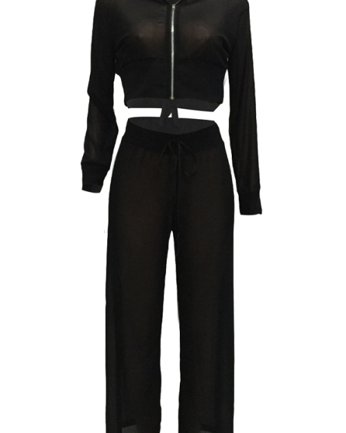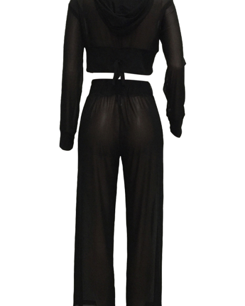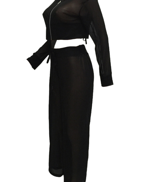 Sexy See-Through Black Polyester Two-piece Pants Set