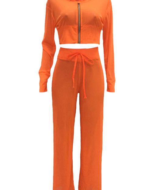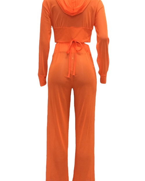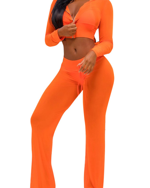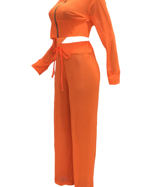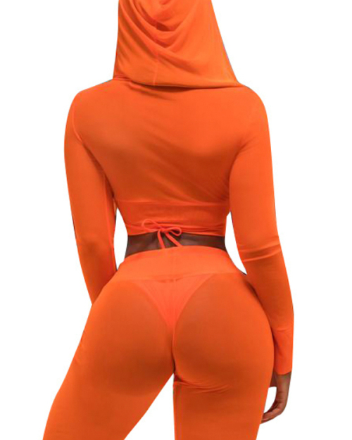 Sexy See-Through Orange Polyester Two-piece Pants Set