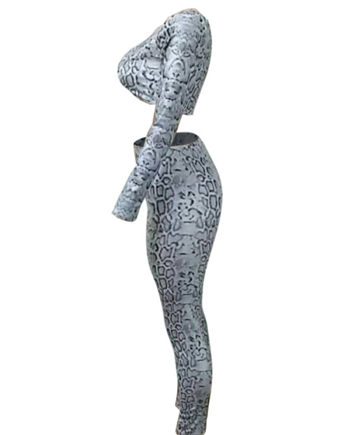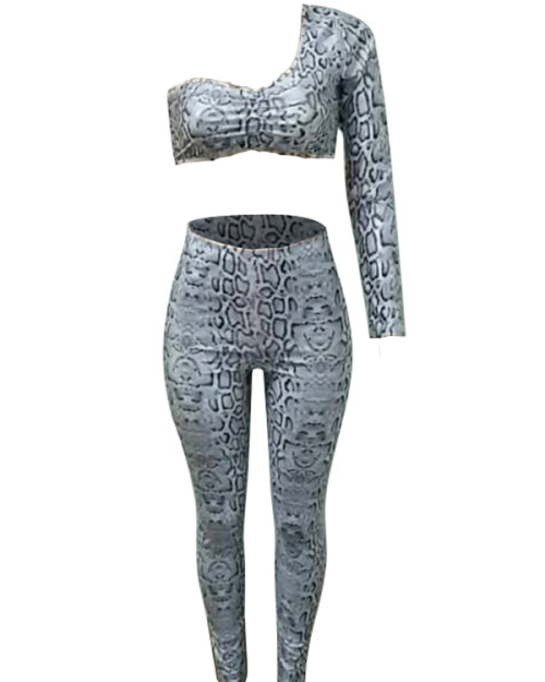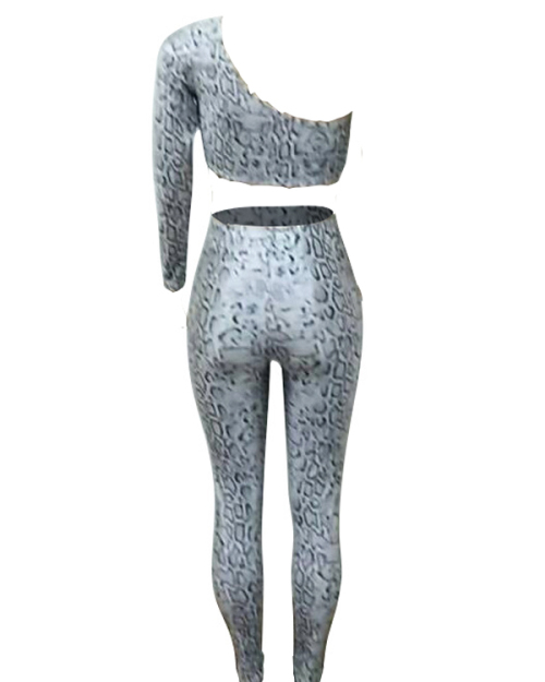 Sexy Show A Shoulder Grey Polyester Two-piece Pants Set