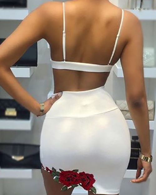 Sexy Sleeveless Patchwork White Cotton Blend Two-piece Skirt Set