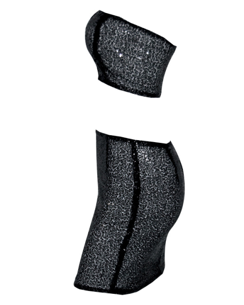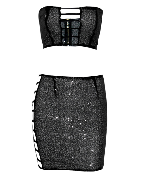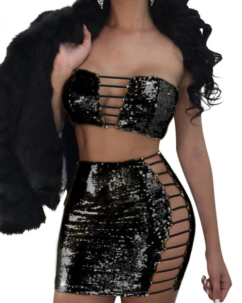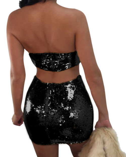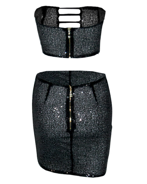 Sexy Strapless Hollow-out Black Polyester Two-piece Skirt Set(Without Coat)