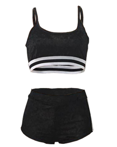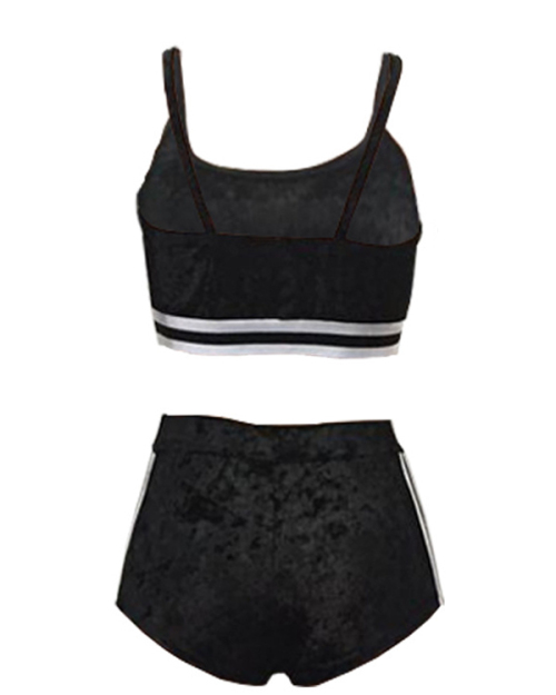 Sexy U-shaped Neck Patchwork Black Velvet Two-piece Shorts Set