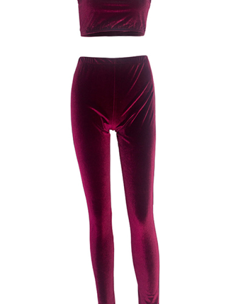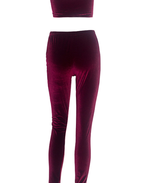 Solid Color Bateau Neck Sleeveless Wine Red Two-piece Pants Set