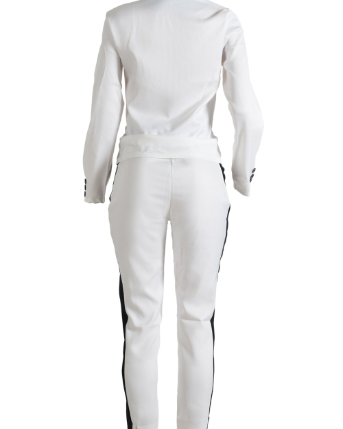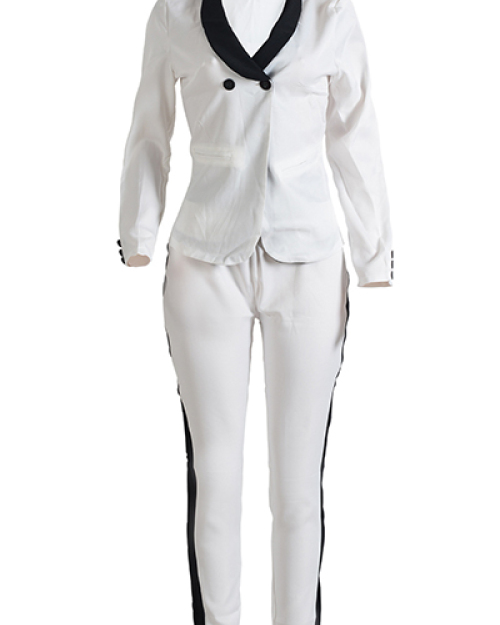 Stylish Long Sleeves Black-white Patchwork Polyester Two-piece Pants Set