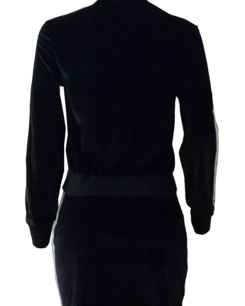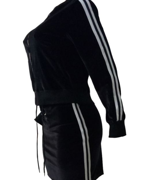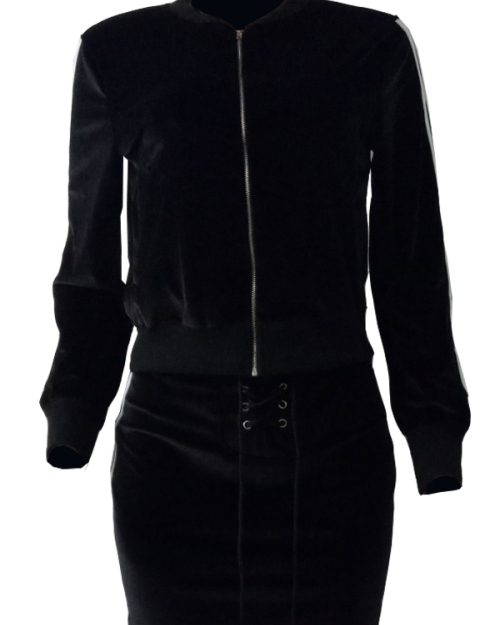 Stylish Mandarin Collar Lace-up Black Velvet Two-piece Skirt Set