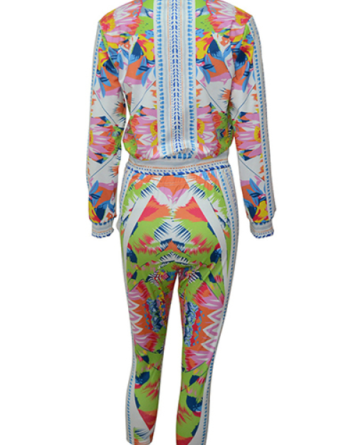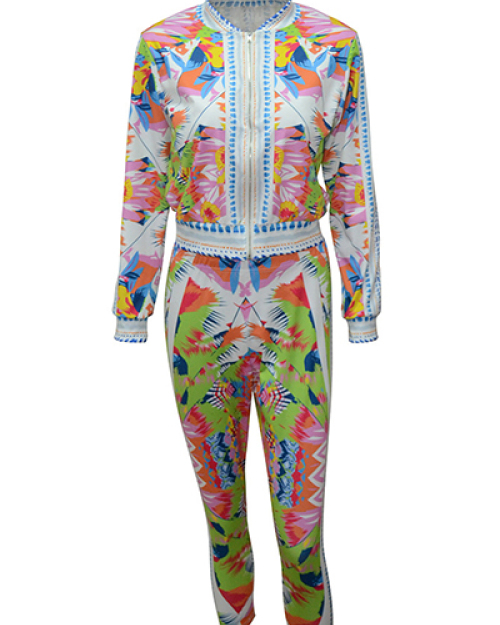 Stylish Mandarin Collar Long Sleeves Printed Healthy Fabric Two-piece Pants Set