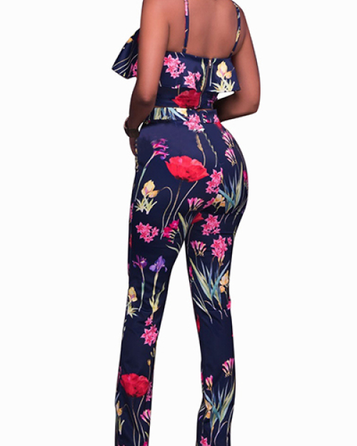 Stylish Rose Printed Blue Healthy Fabric Two-piece Pants Set Stylish Rose Printed Blue Healthy Fabric Two-piece Pants Set