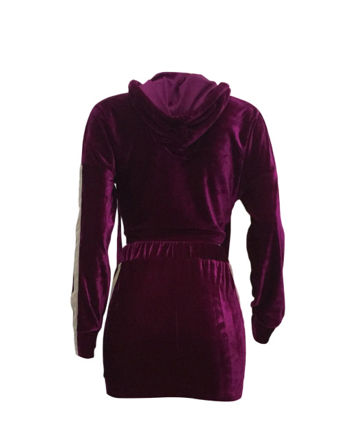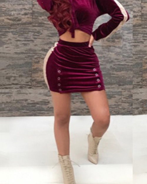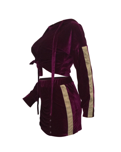 Stylish Turndown Collar Long Sleeves Patchwork Purple Polyester Two-piece Skirt Set
