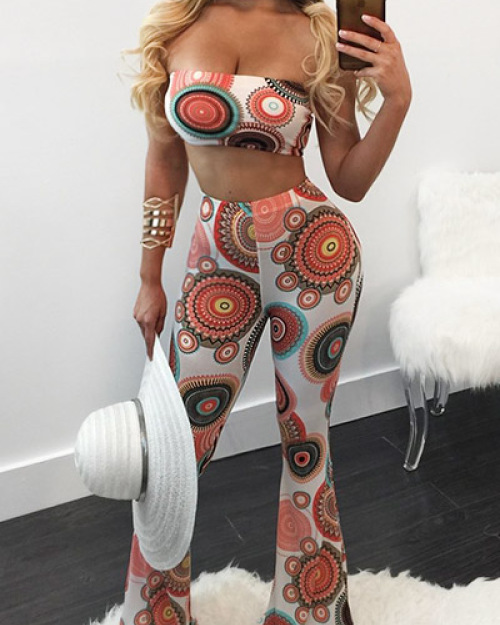 White Polyester Pants Print Bateau Neck Sleeveless Sexy Two Pieces