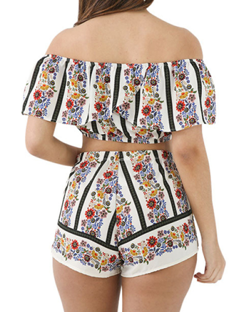 White Qmilch Shorts Print Bateau Neck Short Sleeve Sexy Two Pieces